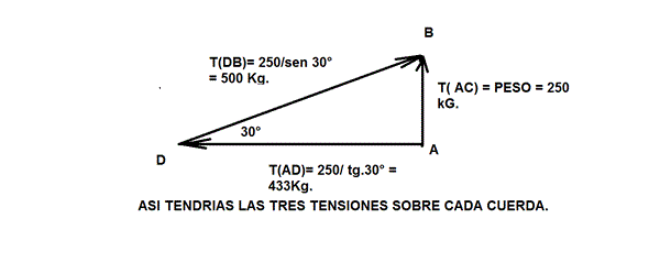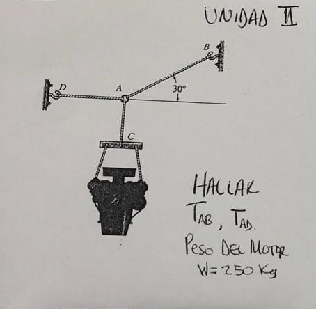 Como determinar el peso del motor respecto a que W= 250 kg. Y un angulo de 30°