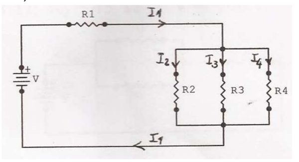 En el circuito de la figura, hallae la tensión V, sabiendo que la intensidad de corriente es que circula por R3 es de 14 A.