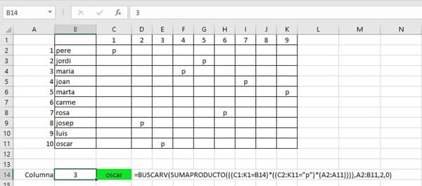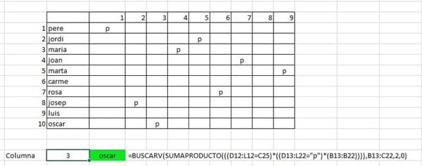 Una especie de BUSCARV() pero el dato buscado puede estar en cualquier columna, aunque yo ya sé la columna y la indico, y que localice en que fila está el dato y me devuelva el data de esa fila pero en 1a columna.