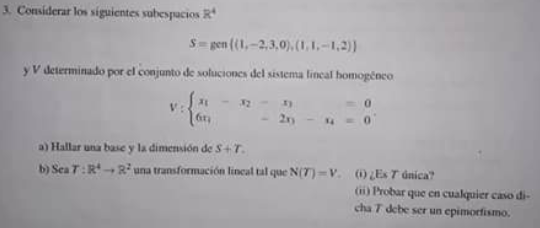 Con respecto al punto b como se si la transformación es única . V tiene los generadores (1,1,0,-6) y (1,0,1,-4)