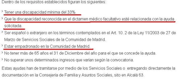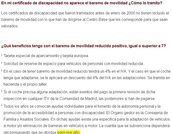 En este enlace podemos ver el tema más en profundidad, por ejemplo, llama la atención que de entrada, si he comprendido bien, este baremo necesita solicitarse de manera independiente al grado de discapacidad, y sólo es aplicable en caso tener un 33% (como sabrá, es el porcentaje mínimo para poder tener la condición de discapacitado), y -lo más sorprendente según la información de esta página-, estar empadronado en Madrid.