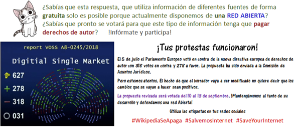 Para más información sobre la campaña en el Parlamento Europeo y cómo actuar, visita https://meta.wikimedia.org/wiki/European_Parliament_vote_in_2018/es.