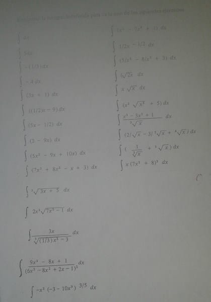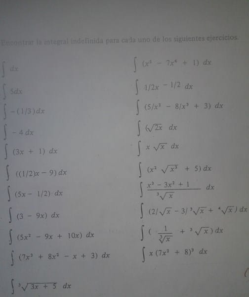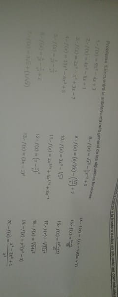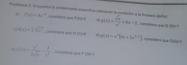 Encontrar la anti derivada y integral indefinida de los siguientes problemas