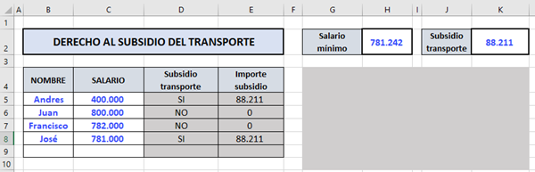 Se conoce el salario de un trabajador y se quiere saber si tiene derecho al subsidio de transporte.