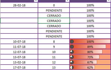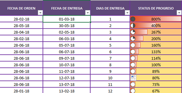 Esta es la fórmula SIFECHA para calcular el progreso en porcentaje: