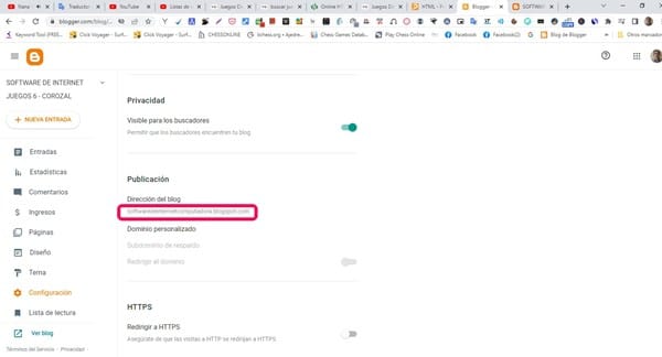 Y debajo las palabras DIRECCION DEL BLOG para mi caso