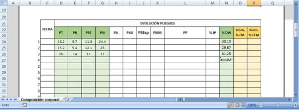 Estoy trabajando en Excel una herramienta que me permita el calculo del % de grasa de mis pacientes. Ya he logrado sacar la fórmula pero el problema que tengo es que esta necesito aplicarla para los diferentes controles (12). Me explico: