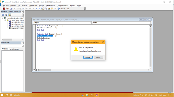 Se me ha presentado un problema al momento de ejecutar la base de datos de este modo. Seguí las instrucciones de este vídeo: ( https://www.youtube.com/watch?v=FKx4ZYmDPIw) Ya he ingresado los códigos debidos para que la base de datos se ejecute de esta manera, pero al abrir un formulario y darle click en el botón imprimir (vista previa) donde hice un informe la base de datos se detiene y no puedo avanzar más.