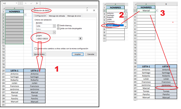 Cómo hacer un lista desplegable en Excel con valores que permitan ser seleccionados sólo una vez?