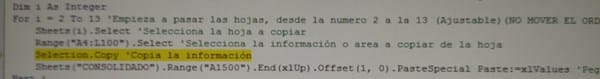 Tengo una solicitud tengo el siguiente código que copia la información de las hojas en un rango seleccionado y lo pega en otra hoja, el orden de pegado se da por el orden de las hojas, eso quiere decir que la información de la página 1 se va a copiar de primero y la última página se copia de último