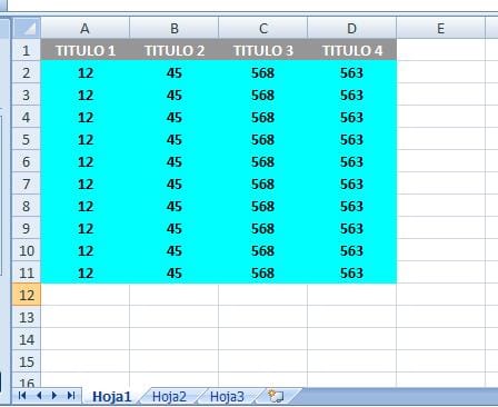3.- Formatea el resto de la tabla en color azul celeste y letra en negritatodo esto se puede hacer en una macro aunque la deje en 2