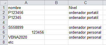 Puede salir una P123456 en la celda 1 y otra en la celda 500, etc