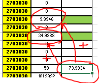 Y como última condicional es que el número 73.99 se sume con los datos verdes DE UN MISMO PROYECTO (columna amarrilla):