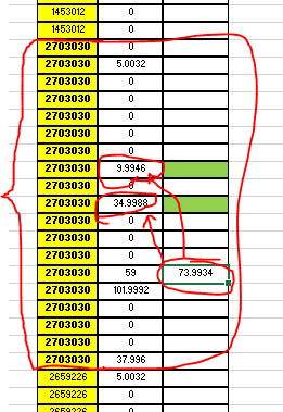 Haga que ese número se sume con los datos que están al lado de las celdas verdes (Columna Adicionales). Importante que sean las celdas verdes, porque hay más adicionales que no se deben sumar.