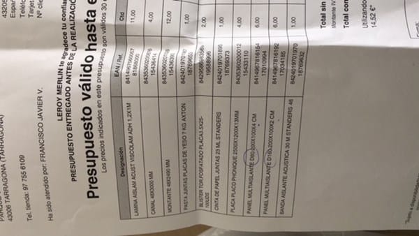 En cuanto al presupuesto que te han pasado, lo único que te puedo decir es que no me dice nada. Deberías pedir especificaciones más concretas del trabajo que te proponen hacer, aunque no creo que las consigas pues se ve a la larga que no son especialistas en acústica. Creo que has recurrido a alguien que no tiene ni idea.