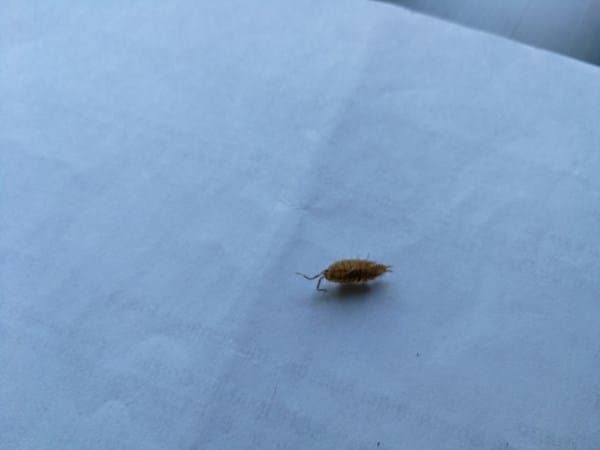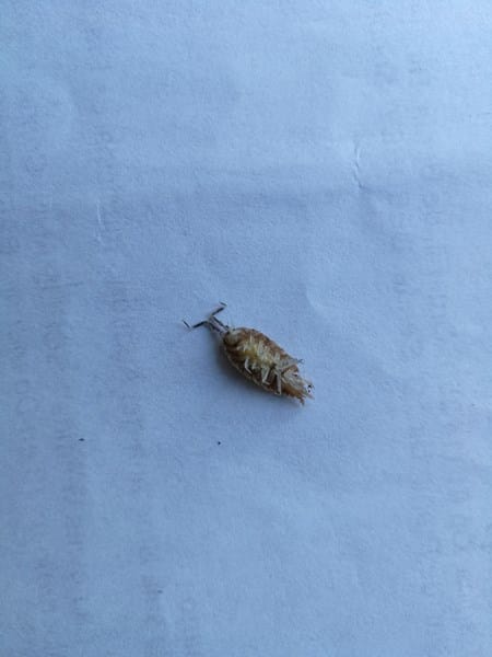 No es un insecto, sino un crustáceo (como las gambas) del orden isópodos. Parece Oniscus asellus, una especie muy común. Los isópodos terrestres (son más abundantes en ecosistemas acuáticos) viven en sitios muy húmedos y se alimentan de restos orgánicos (no pienses en basura, sino en madera pudriéndose, piel y grasa del desagüe y cosas así) o, más raramente, plantas. La gente los llama «bichos bola» y los libros cochinillas de la humedad. No hacen nada preocupante: no pican, no deterioran alimentos o enseres, no transmiten enfermedades… Lo más recomendable es ignorarlos en esas pocas ocasiones en que se deja ver uno, lo más a menudo en cuartos de baño: en cuanto se mueven a ambientes secos se deshidratan, como la que tú encontraste. La segunda foto está desenfadada, pero la primera es excelente, sobre todo para estar hecha con un teléfono, aunque sea un P10.