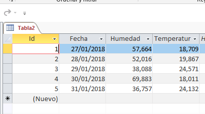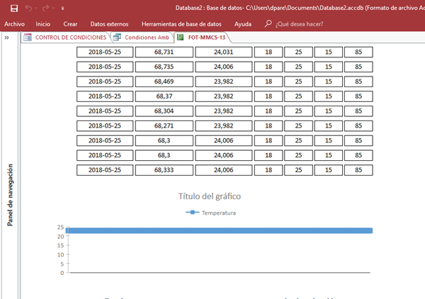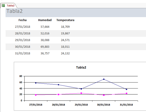 Tengo una tabla de condiciones ambientales de un recinto, en tabla es la temperatura y humedad histórica con fechas, creo una consulta y filtro los datos por fecha desde un formulario con un comando de búsqueda de fecha