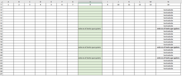 Tengo una hoja con 14 columnas y 150 filas, en la columna 14 hay celdas con un texto determinado, cuando este texto aparece necesito que se modifique el texto de la misma fila en la columna 8 y el resto de la columna no se modifique.