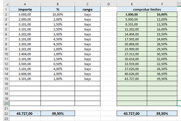 Solicito de su apoyo, tengo un rango determinado, contiene ciertos porcentajes y están determinados de acuerdo a unos cuartales establecidos, lo que necesito es alguna función o macro que me sume varias opciones de ese rango hasta que esa suma me de el 40% de esa lista. Anexo la imagen para que sea mas comprensible.