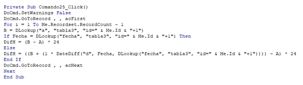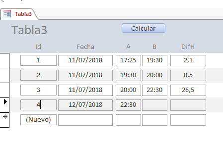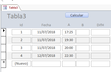 Con gusto le ilustro unas imágenes de una aplicación que elaboré hace un tiempo. Consiste en la asignación de turnos para vigilantes, en donde se contemplan diferentes tipos de horas extras teniendo en cuentas los días festivos de Colombia. En este ejemplo no se requiere registrar la fecha de salida, toda vez, que ésta se calcula con base en los parámetros D=Diurno N=Nocturno.
