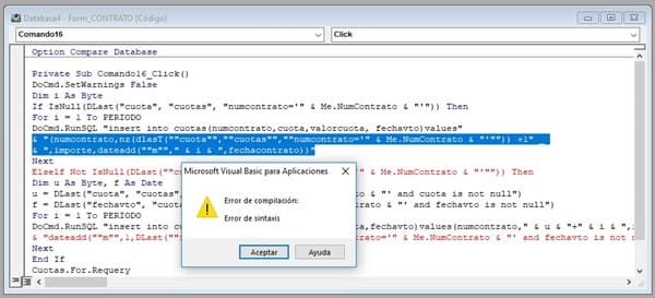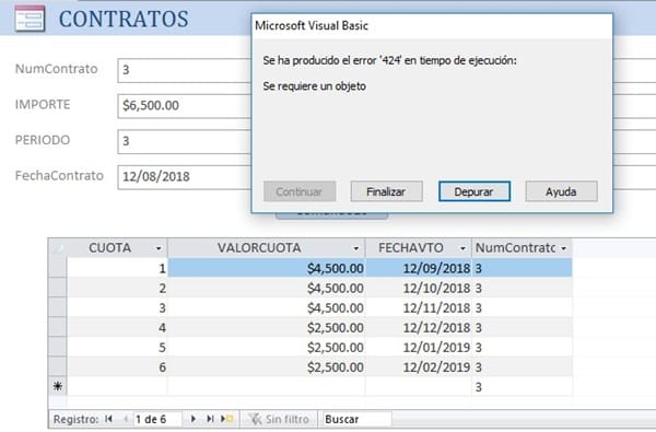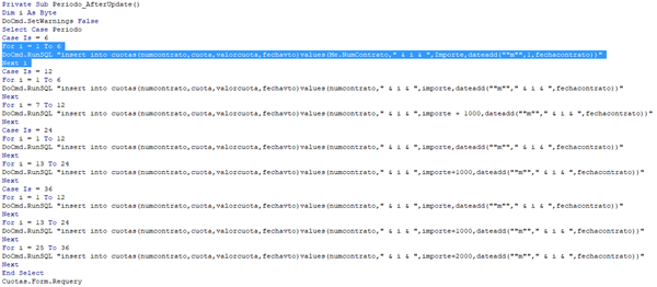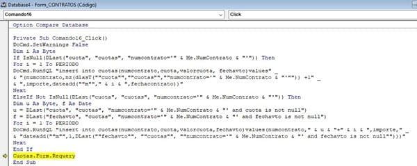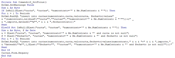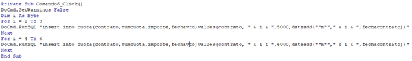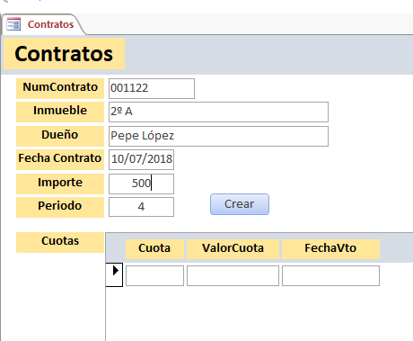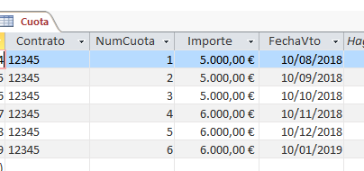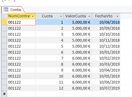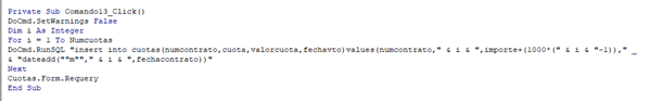 El resultado deseado con un solo click del botón es: (Tabla Cuotas)