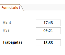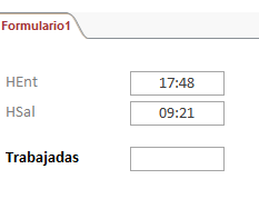 En vba he creado 2 variables de tipo date que son HEnt donde asigno el contenido del 1 texbox y HSal donde asigno en contenido del 2 textbox.
