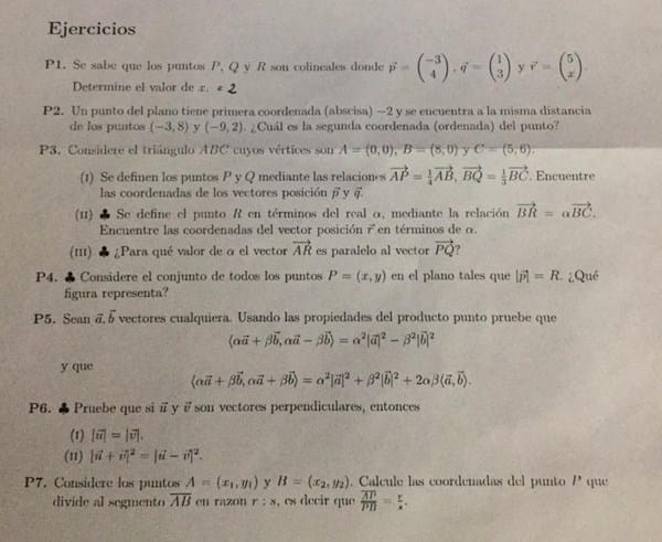 Guía de vectores, en un curso de geometría en dos dimensiones.