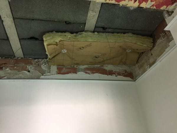 Lo primero presentarme, soy angel, y estoy reformando una vivienda, ahora estoy liado con el techo, que voy a poner desmontable en aseo, despensa y vestidor, y techo continuo de pladur en el resto de la vivienda. Mi duda es acerca de el aislante térmico, había escogido rollo de fibra de 8cm de espesor, pero no tengo muy claro cual es la mejor manera de colocarlo, ya que me gustaría que estuviera pegado al forjado, para así dejar espacio entre el aislante y el falso techo por el tema de los downlight para que disipen el calor y para que sea más cómodo colocar luego el techo. He echo una pequeña prueba con unas rosetas, y no se queda mal, pero no se si es la manera correcta de hacerlo, para colocarlo con las rosetas he recortado trozos de 100x50cm y he taladrado la fibra y la bovedilla a la vez. Mi pregunta es si es esta la manera correcta de colocar el aislante, o hay mejores métodos. Gracias de antemano (adjunto un par de fotos de la prueba)