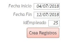 Tres "Controles" Independientes en el Formulario Empleados, con los Nombres de: FInicio, FFin y el IdEmpleado (que en tu caso ya debes tener). Un Botón que llamaré >> BtnCreaRegistros
