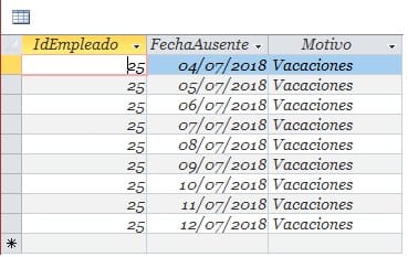 Buen apunte Diego para simplificar código: No obstante creo que la terminación debería ser ,'Vacaciones')" en lugar de ,'Vacaciones''"). Un saludo >> Jacinto - Jacinto Trillo Jareño