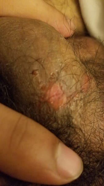 Hace semanas que me ha salido un. Brote de bolitas color claro, rasado, también una mancha rojiza más grande alrededor de las bolitas