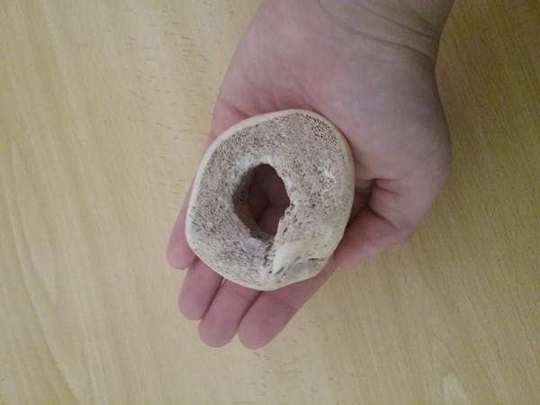 He encontrado en el mar un hueso que parece una vertebra, pero no se de qué animal es. Mide 7 cm de diámetro y 3,5 cm de alto.