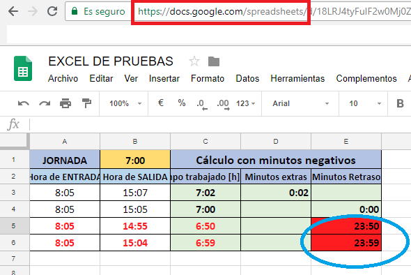 Cómo obtener Minutos NEGATIVOS en Excel y Google Spreadsheet (Hoja de cálculo de Google)