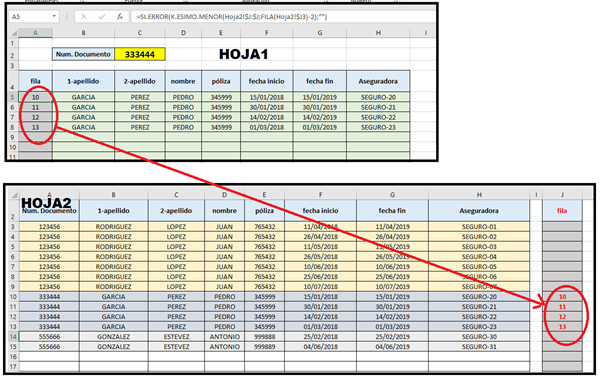 En resumen necesito un buscarv que me devuelva ciertas las filas de la base de datos del mismo valor las veces que se repita