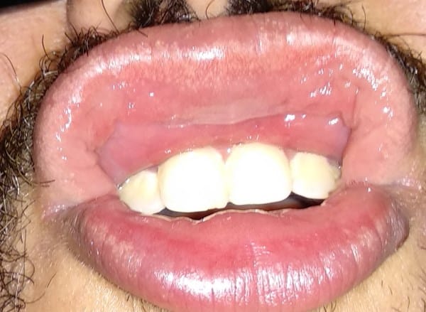 Bolitas debajo del labio indoloras que crecieron bastante de una semana, labio superior blanco y bajo de ella más bolitas e hilos del mismo color de forma simétrica, ¿puede ser un hongo o bacteria? Labio inferior un poco rojo en las esquinas, me lo rompí sin querer con una espinita al pasarme una hoja de saliva y ahora esta un poco hinchado y deforme lo raro es que llevo como 4 días así, papilas algo irritadas desde hace mucho, también he comido mucho ajo masticándolo crudo todo el mes no se si se deba a esto