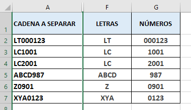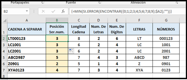 ¿Cómo separar LETRAS y NÚMEROS variables en una misma celda en Excel?