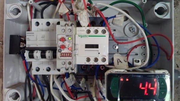 Arranca un compresor para enfriamiento trifásico y dos ventiladores 220 y el timer arranca un motor 220 para ajitar la leche y tiene del lado isq u n suicht de tres pasos 1 prende todo 2 apaga todo y 3 prende el agitador por su atención mil