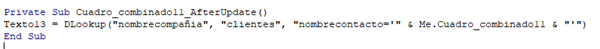 Problema con función dlookup visual basic