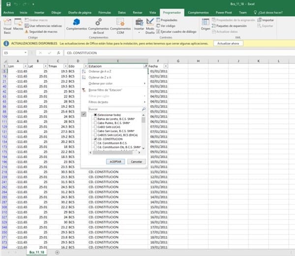 Tengo esta tabla: se puede con una macro ir filtrando estación por estación e ir guardando el resultado de cada filtro en formato csv con el nombre de la estación?