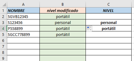 En la columna A, todo lo que empiece por SG que en la columna C me escriba portatil.