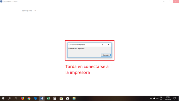 Mensaje tardío al conectar la impresora en el Microsoft WORD 2016