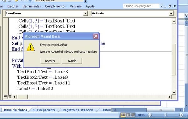 2 Esta duda es relacionada con la primera, ya que trata de textbox, como pueden ver muchas hojas como ser la de Nuevo paciente, es básicamente un formulario. El problema es que como no se como hacer para transferir información desde el textbox a la celdas de forma permanente, solucione el problema de una forma distinta.