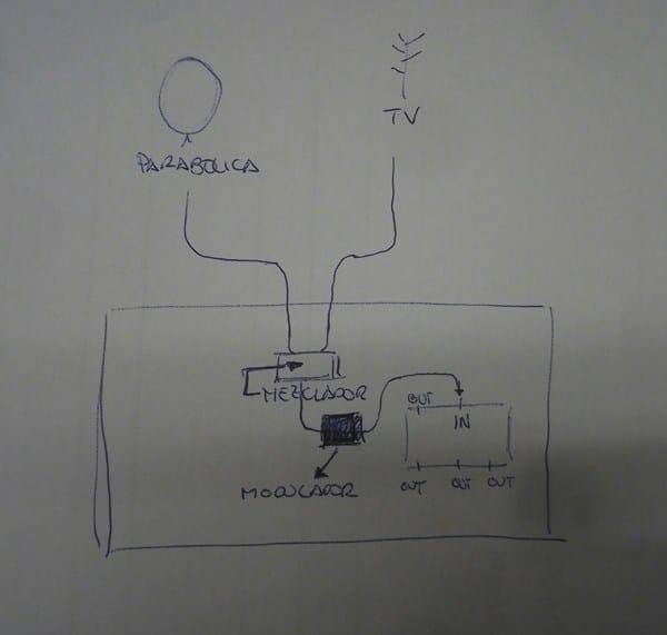 Tengo un modulador analógico modelo: VHF ROVER ROMA 87046, instalado directamente en la caja de telecomunicaciones como se ve en el dibujo: