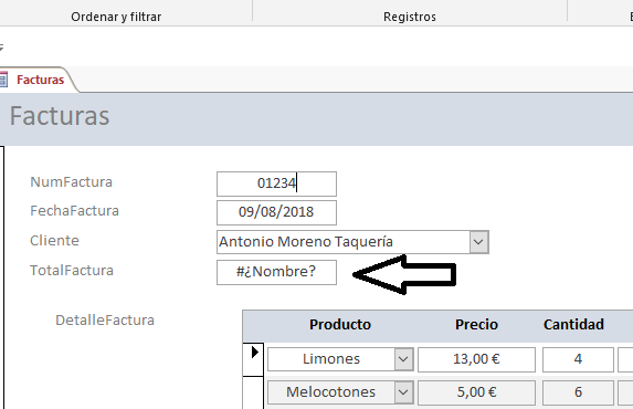 Cuando se aplica algún filtro u orden en el formulario por alguno de los campos establecidos desde una tabla, los campos calculados del formulario aparecen con el error #¿Nombre?