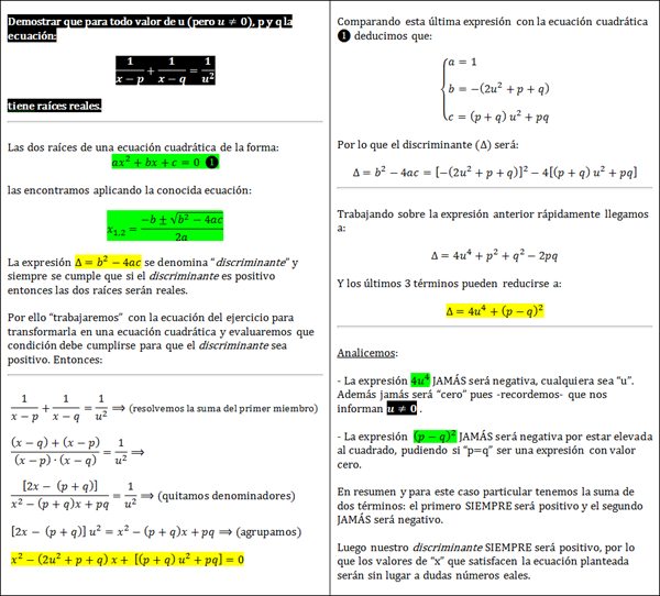 Demostrar que para todo valor de a, p, que, la ecuación (a≠0), tiene raíces reales