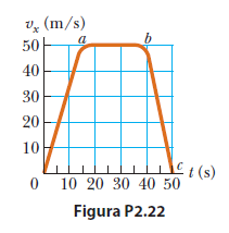 3) 40 a 50 s: la velocidad decrece de 50 m/s a 0 en 10 s, lo que implica una aceleración negativa de 5 m/s^2;