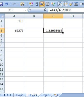 Tengo un problema, ejemplificóMi operación es: A3/A1*1000