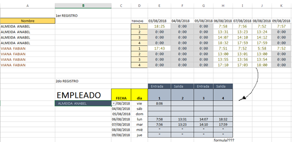 Tengo información de los empleados en el primer registro y para poder hacer algunos cálculos con esa información quiero consolidar los datos en el segundo registro donde necesito que me aparezca la información cuando busco por empleado...