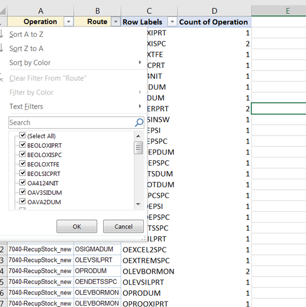Tengo una tabla ya filtrada para ciertos elementos, ahora estoy intentando filtrar la segunda columna por los elementos que aparezcan mas de 1 vez, he conseguido crear otra tabla en otra pagina que me copia y pega solo dichos valores, solo los valores que aparecen mas de una vez, ahora mi idea era, recorrer dicha columna para crear un sstring con los nombres de los procesos, por ejemplo llamemoslo,