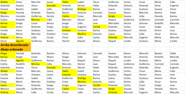 ¿Cómo puedo hacer en excel para ordenar un cuadro o lista de una sola vez con una función o macro con el ejemplo que muestro?